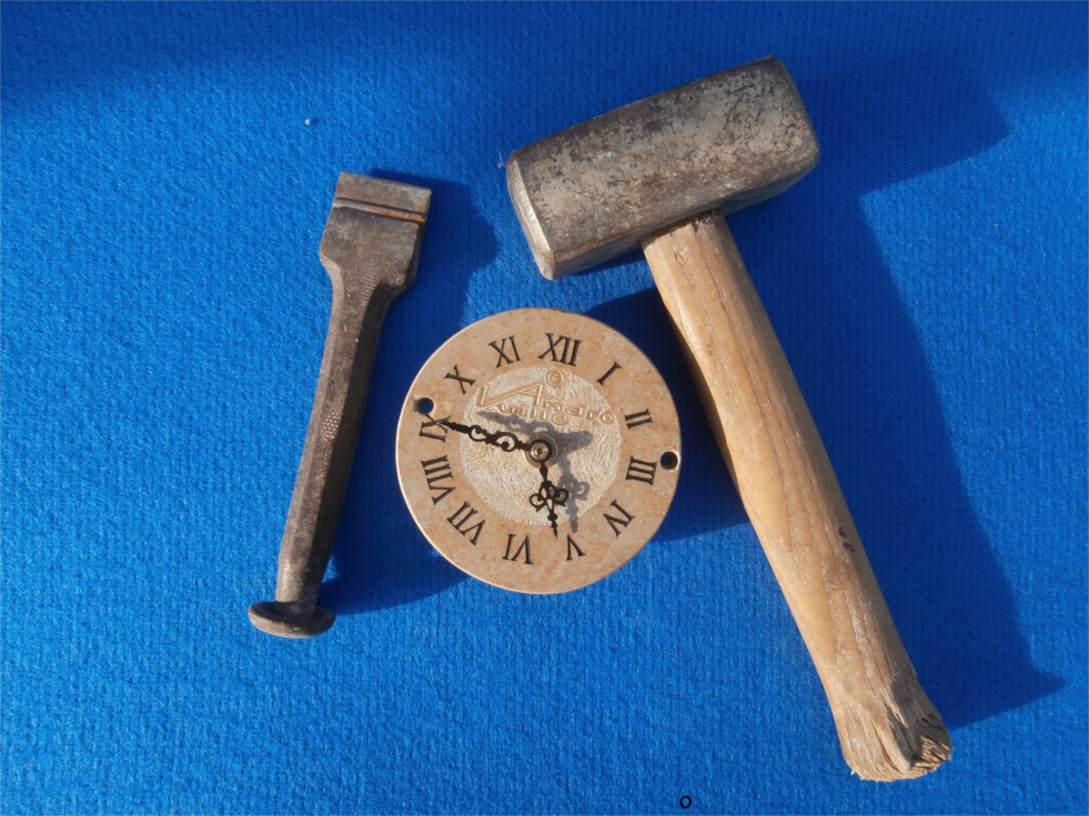 Werkzeuge des Graveurs: Fäustel und Graviereisen.
